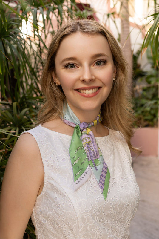 MIAMI BEACH SILK SCARF IN COOL BLUE