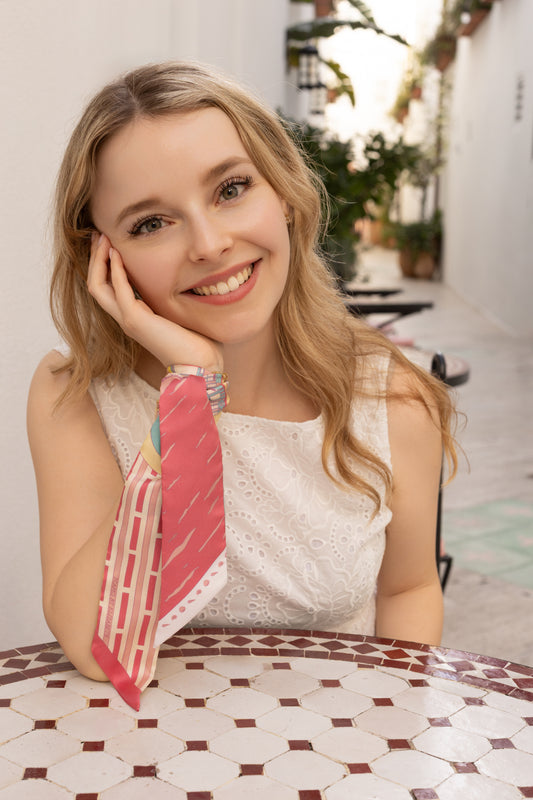 MIAMI BEACH SILK SCARF IN ROSY SPLASH